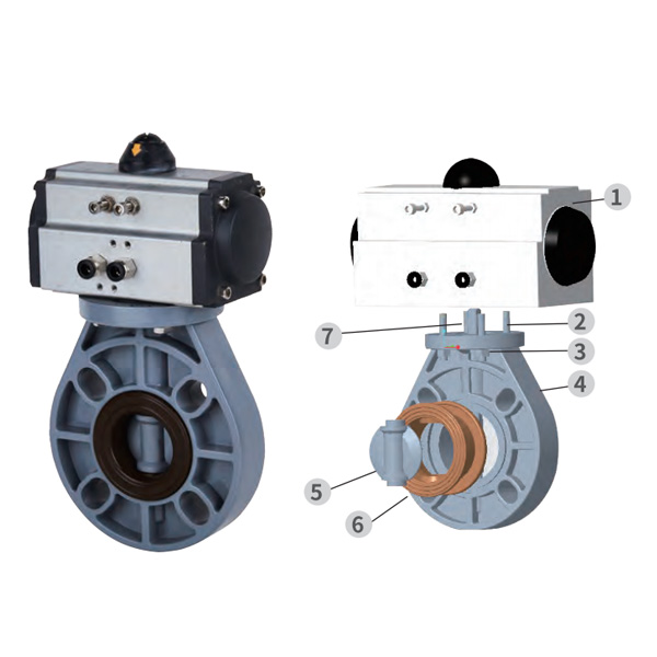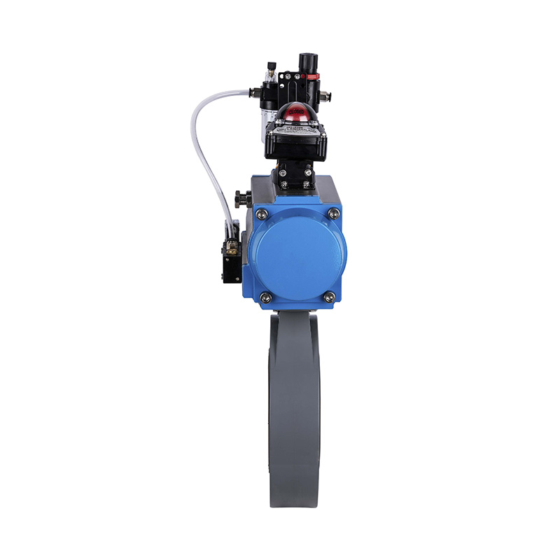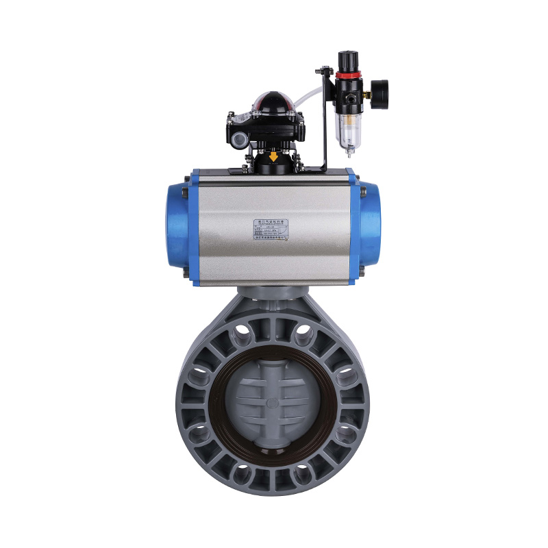 PVC-C空気圧自動バタフライバルブ、センターシール、ソフトシール、DN32-1000、工業用および家庭用プラスチックバタフライバルブ