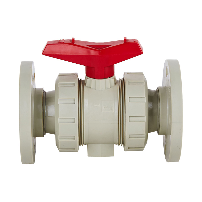 化学水業界向けの、競争力のある価格で超耐久性のある新しいアーシーイエロー PPH フランジ付きダブルソケット ボール バルブです。