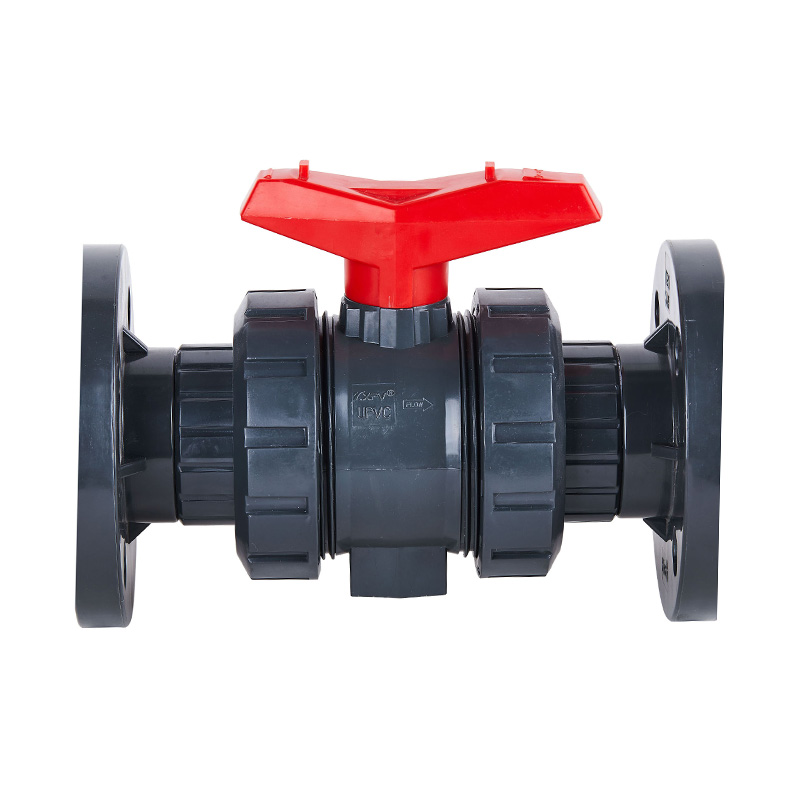 競争力のある価格の超耐久性のある新しいダークグレー PVC-U フランジ付きダブルソケットボールバルブと化学および水産業用の PE パイプ