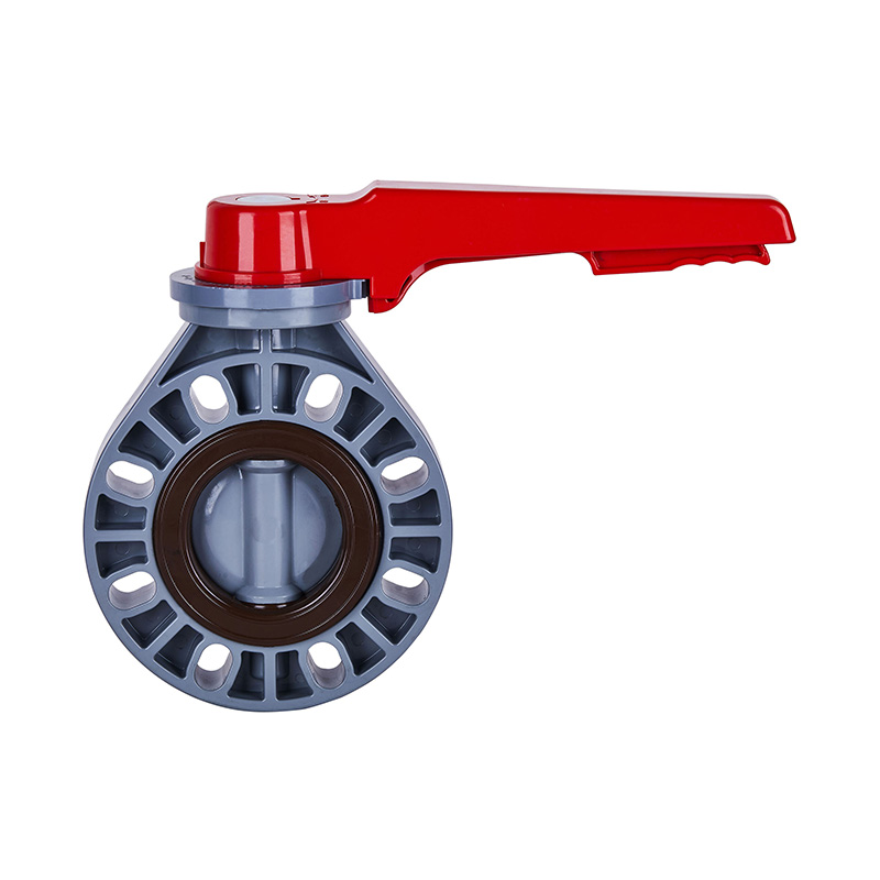 カスタム新品 PVC-C ハンドレバースムーズステム DN15–200 バタフライバルブ、グレー、DIN、JIS、ANSI 規格、4 インチフランジプラスチックバルブ ANSI 規格